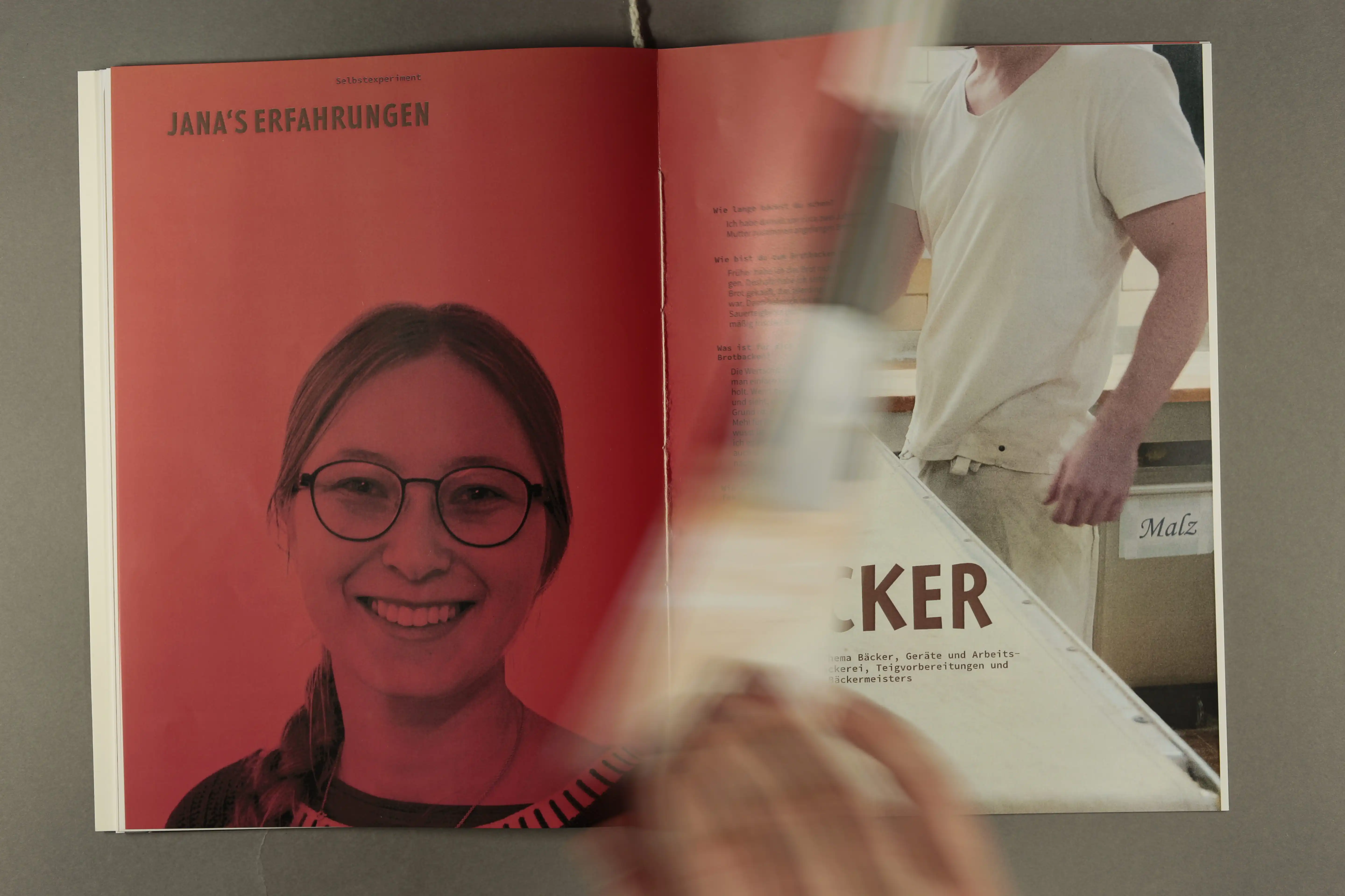 Unser Konzept drehte sich um die Reise des Brotes – von der Getreideernte und einem Besuch in der Sting-Mühle im ersten Kapitel, über ein Selbstexperiment und Interviews mit Kommilitonen, bis hin zum letzten Kapitel, in dem wir einen Tag lang die Arbeit eines traditionellen Kleinbäckers begleiteten.