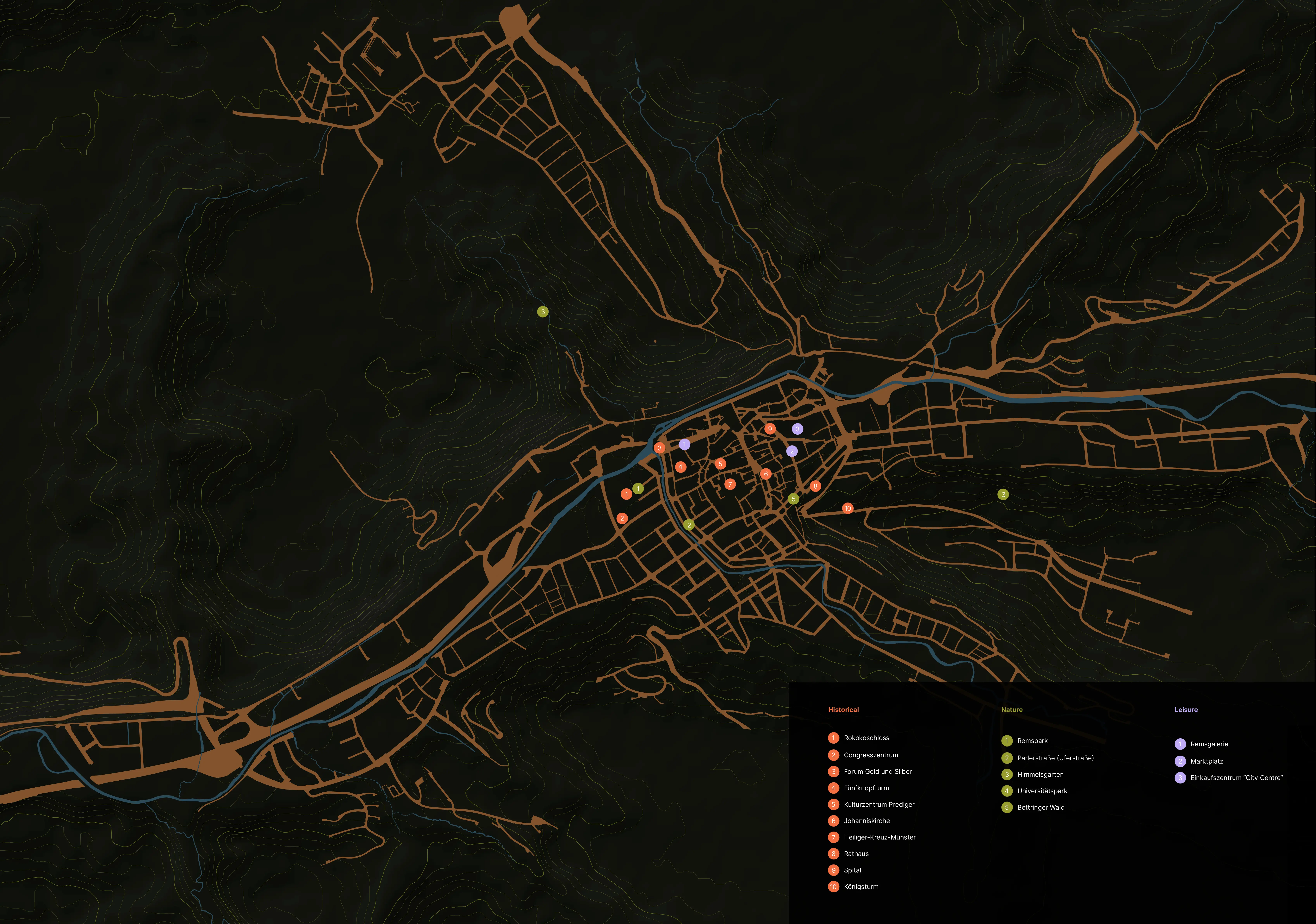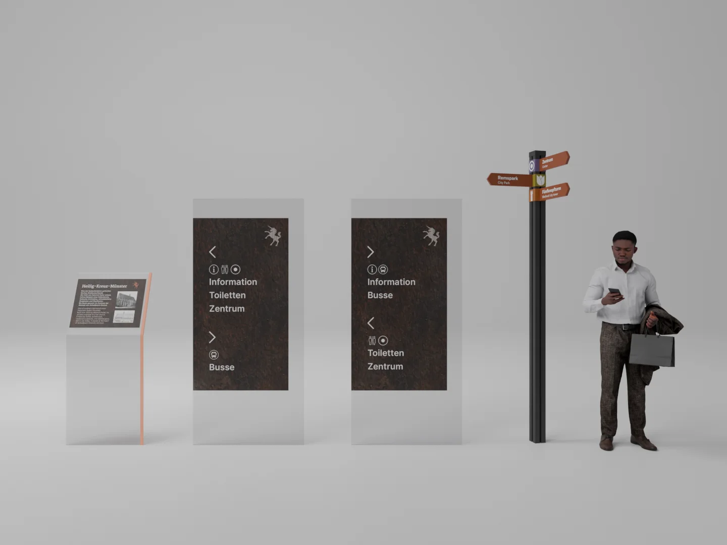Um das zu lösen, haben wir ein klares und einladendes Leitsystem entworfen, das Neuankömmlingen hilft, die Schönheit, Geschichte und verborgenen Schätze der Stadt sicher und mühelos zu entdecken.